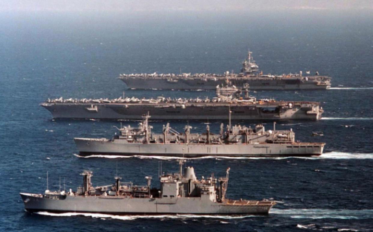 美国航母编队通常跟着大量后勤类舰船另一个因素就是核动力航母。